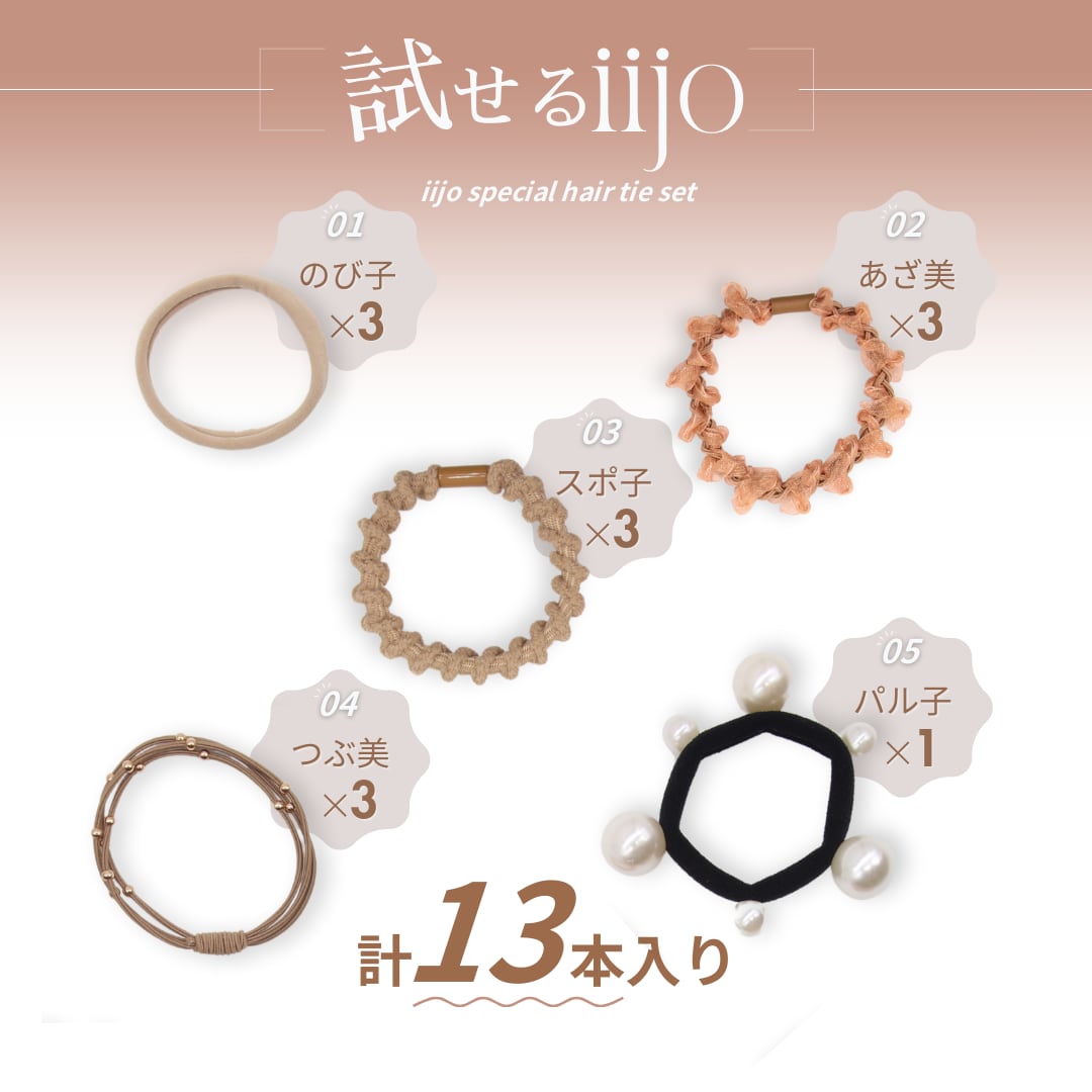 そんな方におすすめの「試せるiijo」。人気のヘアゴムをお手頃価格でお試しできるお得なセットです。