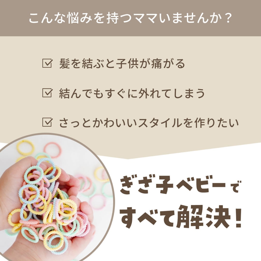 「赤ちゃんや小さな子の髪を優しくまとめたい!」そんなママにぴったりの「ぎざ子ベビー」。