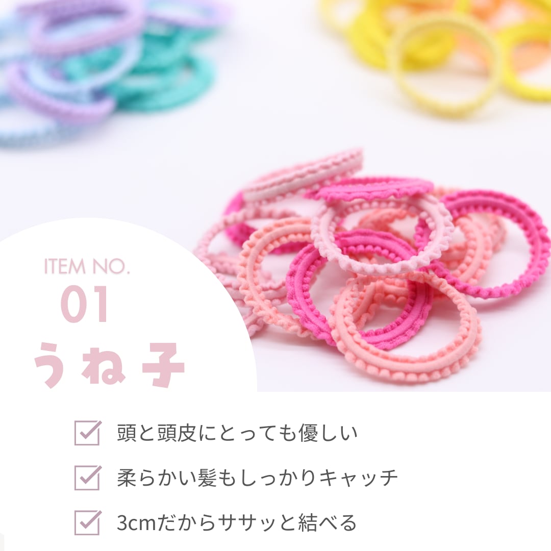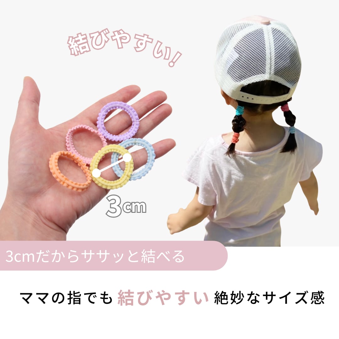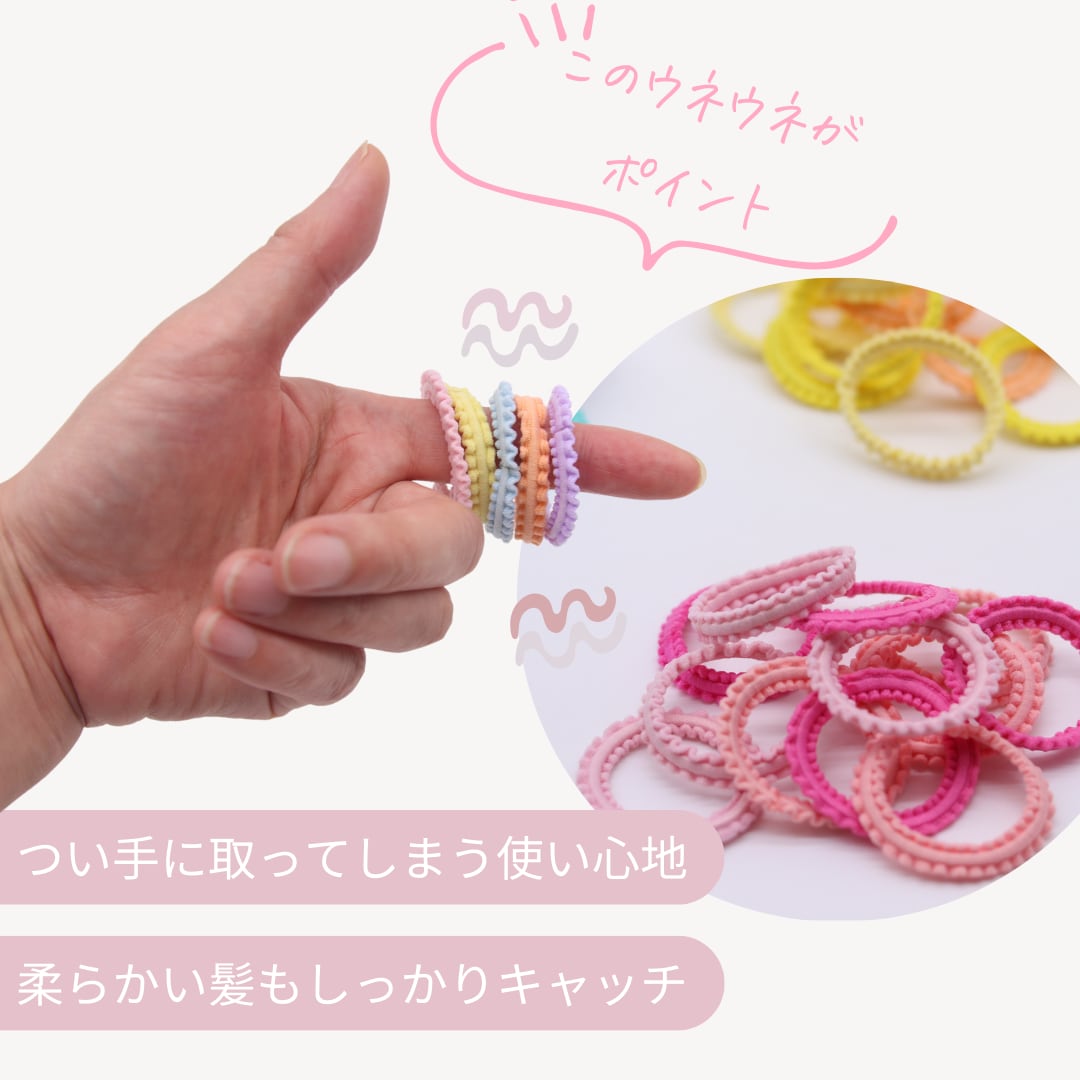 いろんな種類のヘアゴムを少しずつ試せるセットだから、お子さまの好みや髪質に合ったものが見つかる!