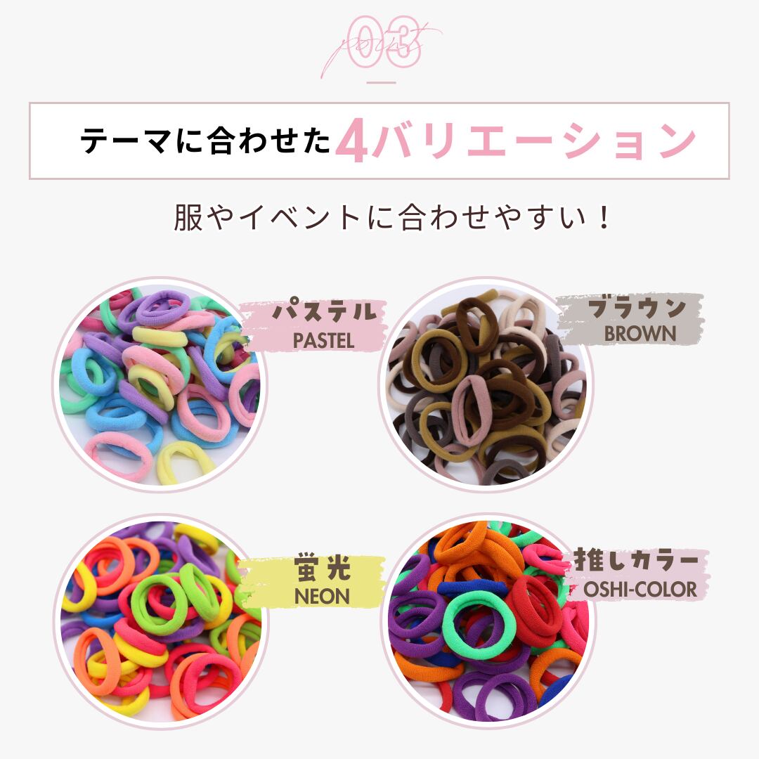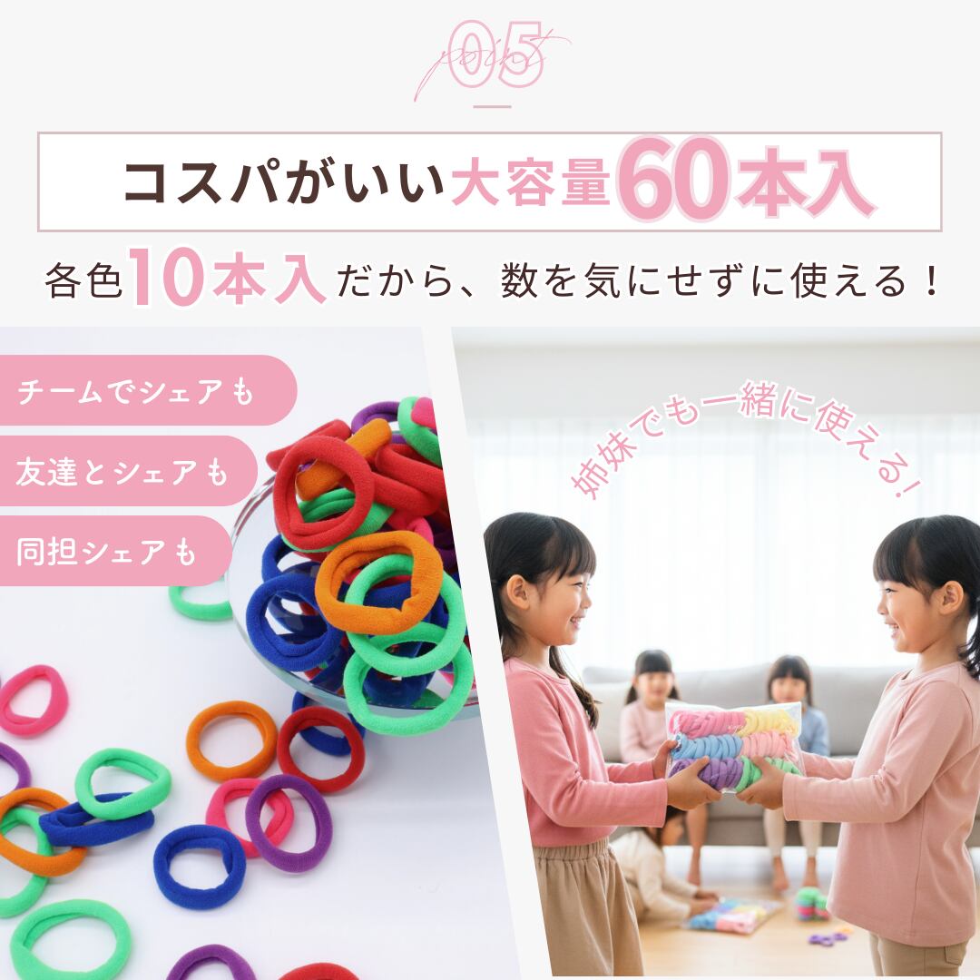 たっぷり60本セットだから、カラーを気分で選べるのが嬉しいポイント♪ シンプルで使いやすく、どんなヘアスタイルにも馴染みます。