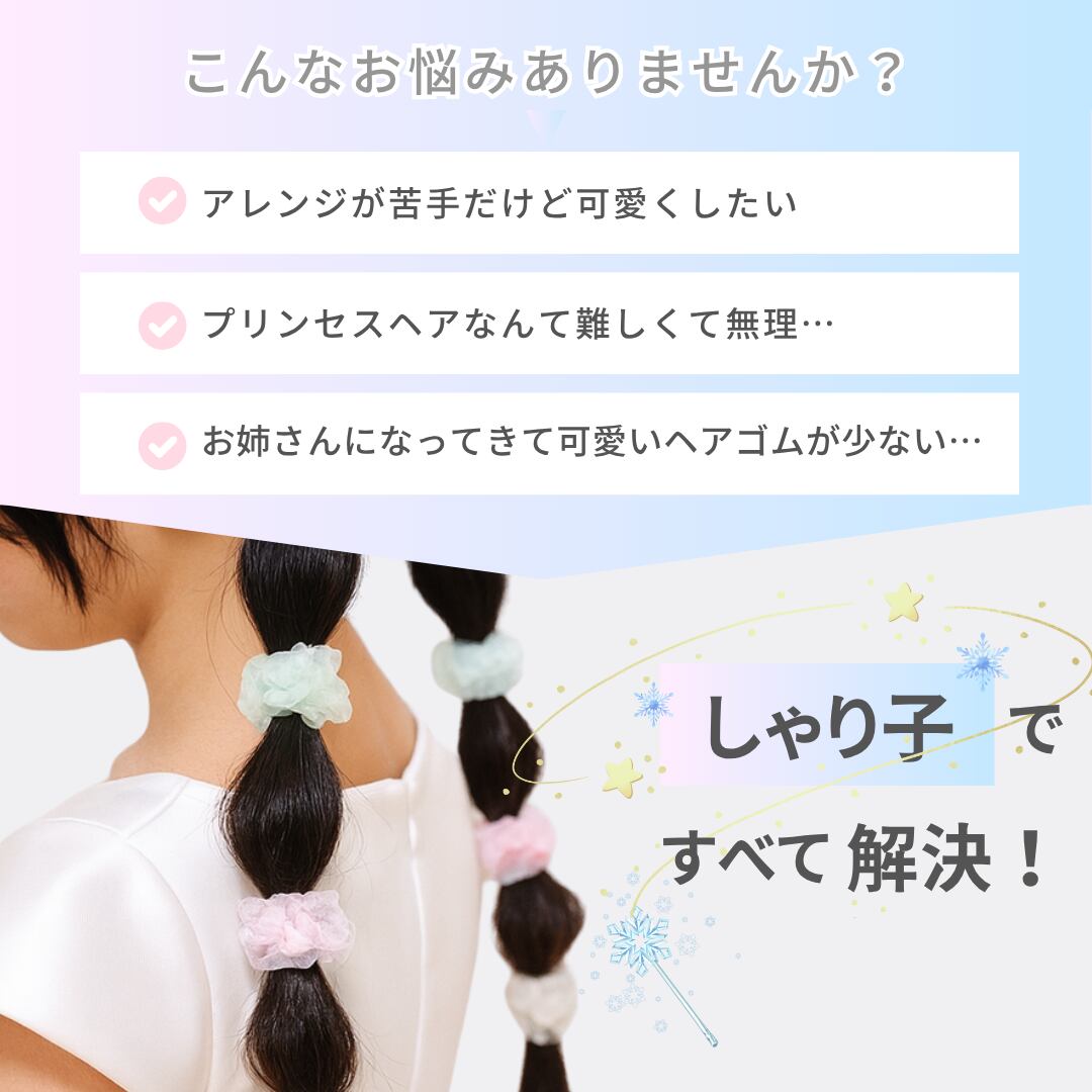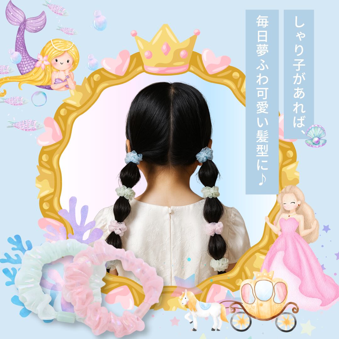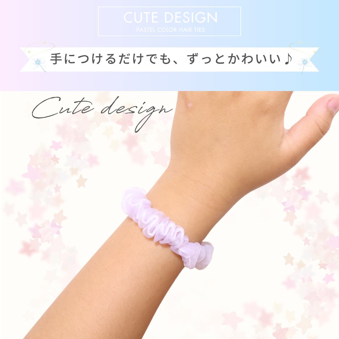 淡いカラーが髪になじみやすく、ナチュラルな印象に。デリケートな子どもの髪にも優しい柔らか素材で、長時間つけても快適。